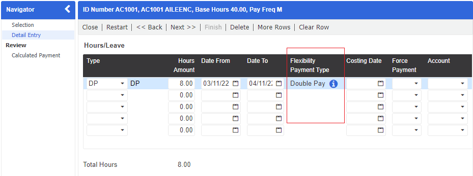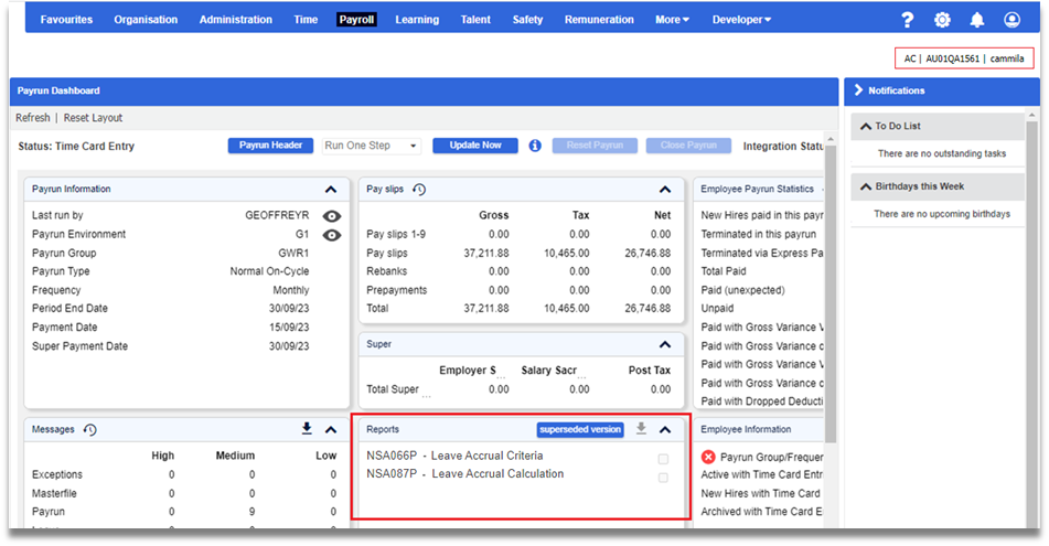 The Tax Weeks Override value is now referenced and displayed correctly in Tax Weeks Used in Calculated Payment drilldown when Post Data from Time checkbox is ticked in Express Pay and Termination Wizard.